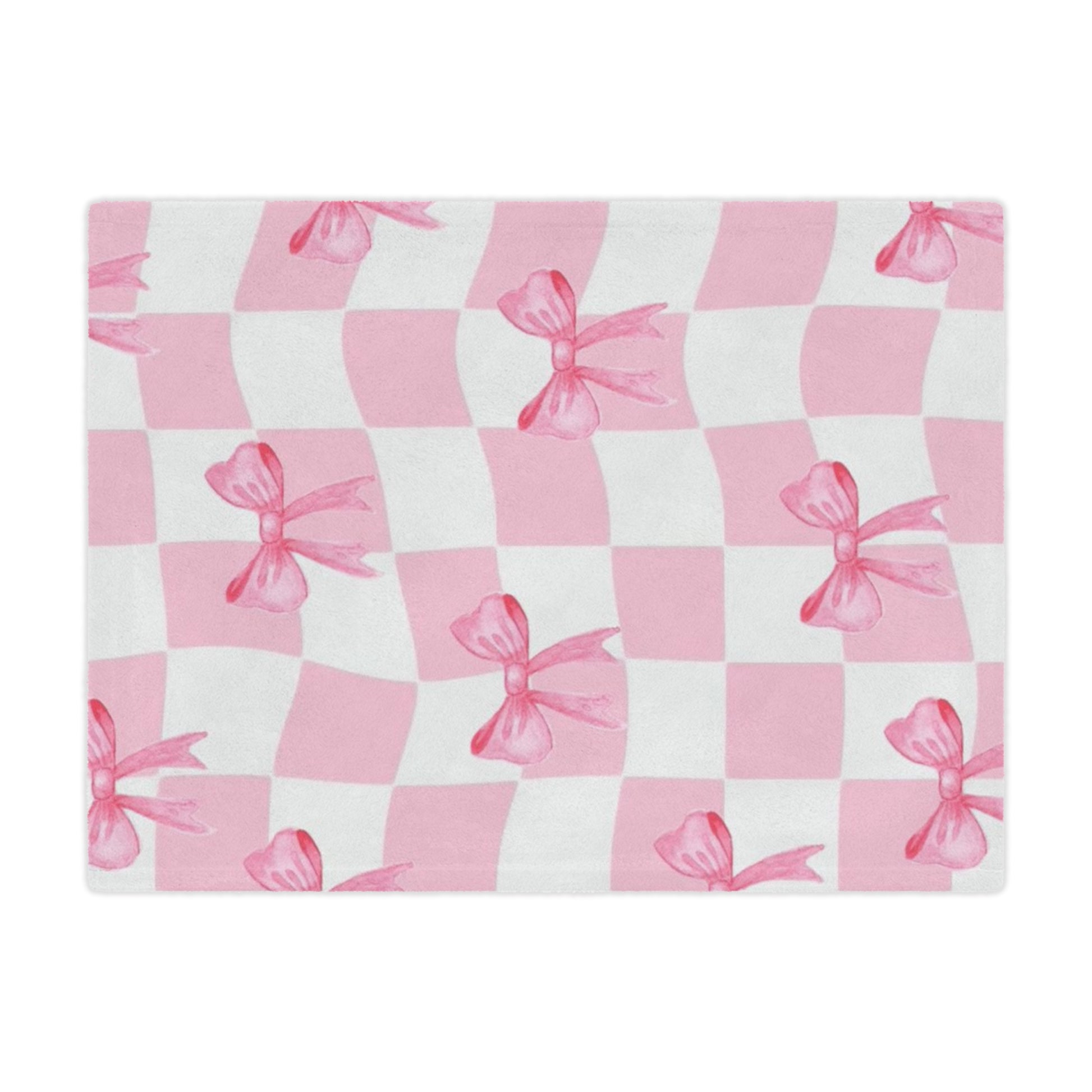 Pink Bow with Checkers - Minky Blanket